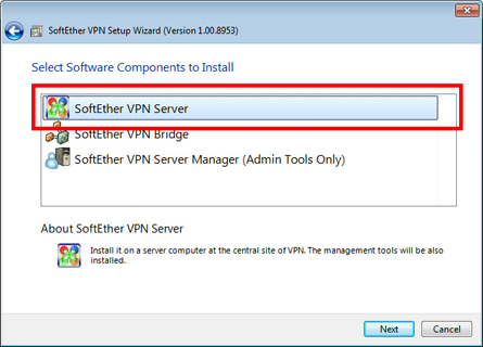 Select "SoftEther VPN Server" in the "Select Software Components to Install" list.