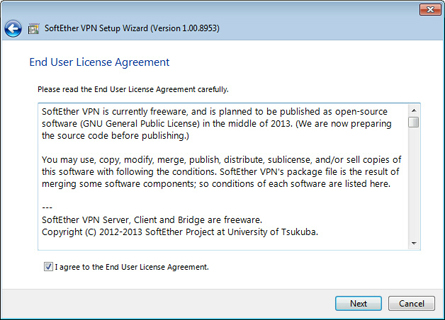 Read the End User License Agreement. SoftEther VPN Sever is currently freeware, and planned to be published as open-source software (GPL).