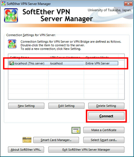 After you install SoftEther VPN Server, connect to the SoftEther VPN Server instance running on localhost.